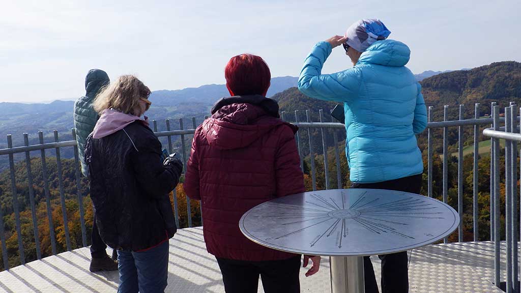 Peš se vzpnemo do gradu, kjer bo čas za krajši postanek in osvežitev. Nadaljevali bomo po markirani poti v smeri Male Rudnice (561 m) in se vzpeli do razglednega Stolpa zdravja in veselja na Silavcu (620 m). Ko se okrepčamo in naužijemo razgledov nadaljujemo po grebenu v smeri zaselka Zaborovec, kjer v daljavi že zagledamo vrh Plešivca (686 m), ki je naš najvišji cilj tega izleta in hkrati najvišji vrh grebena Rudnice. Vrh je poraščen, nekaj več je razgleda s poseke pred njim. Na vrhu je Albinovo počivališče z vpisno skrinjico in žigom.