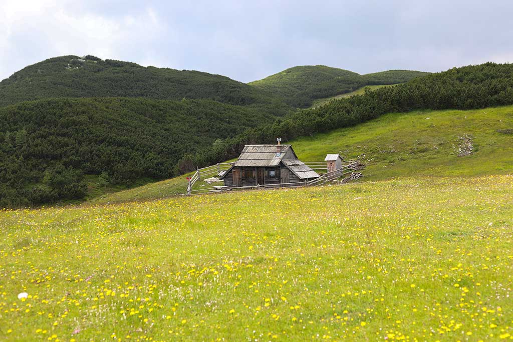Nadaljevali bomo proti manjši pastirski koči na planini Dolga trata. V bližini je tudi lesen križ, mimo katerega vodi pot na Dleskovec.